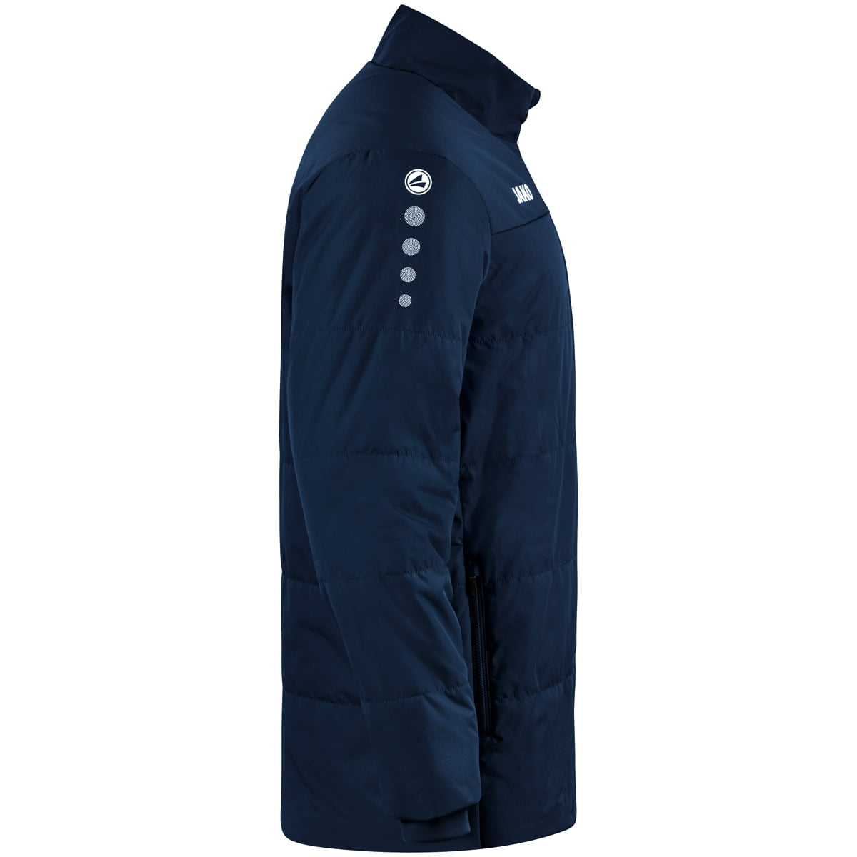 Water-repellent outer material (100 % polyester) and heat-insulating padding make the JAKO Coach Jacket Team your ideal equipment in cool weather when you are standing next to the pitch. Integrated ribbed cuffs and soft fleece on the inside ensure a comfortable feel.