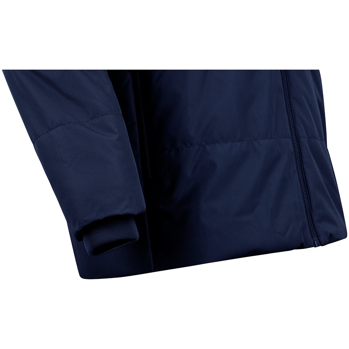 - Integrated ribbed hem on sleeve